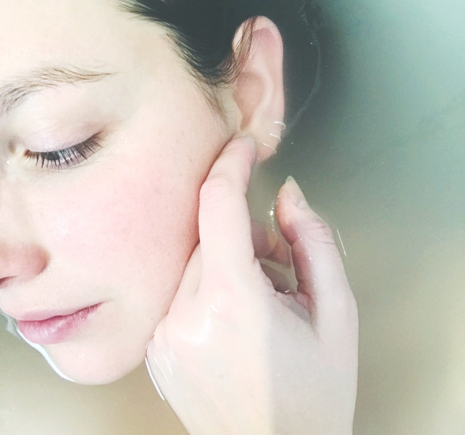 - จากนั้นลงมาล้างต่อที่บริเวณแก้ม ลูบไล้นิ้วมือออกไปตามร่องแก้ม (อย่าลูบเข้าให้ลูบออกอย่างเดียว)