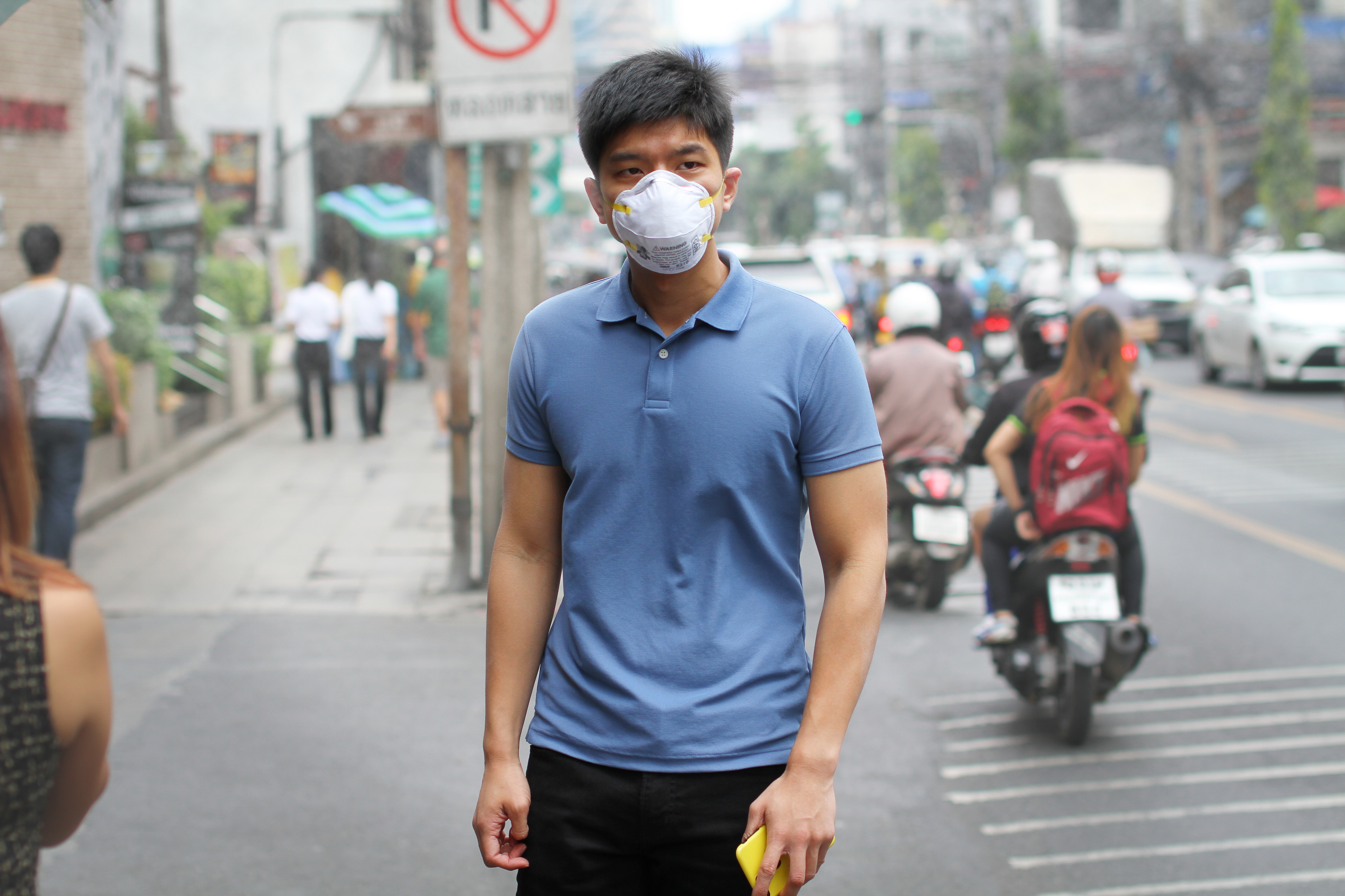 องค์การอนามัยโลก (WHO) ระบุว่าในภาวะที่เกิดมลพิษทางอากาศควรหลีกเลี่ยงการอยู่ในที่โล่งแจ้ง แต่ในผู้ที่จำเป็นจะต้องสัมผัสและอยู่ท่ามกลางฝุ่นละอองขนาดเล็ก PM 2.5 ต่อเนื่อง หากไม่ได้รับการดูแลป้องกันที่ดีมีโอกาสเกิดปัญหาสุขภาพในระบบหายใจ ระบบหลอดเลือด และระบบประสาท โดยทุกคนถือเป็นผู้ที่มีความเสี่ยง ตั้งแต่ในกลุ่มผู้ที่ทำงานกลางแจ้ง ผู้ป่วยเรื้อรัง ผู้สูงอายุ สตรีตั้งครรภ์ และเด็ก นับว่ามีความเสี่ยงสูง ดังนั้น วิธีป้องกันและดูแลตัวเองให้ปลอดภัยจากฝุ่น PM 2.5 ที่ทำได้ง่ายและรวดเร็วที่สุดในขณะนี้คือ การสวมใส่หน้ากากอนามัยที่ได้คุณภาพมาตรฐาน สามารถกรองฝุ่นละอองขนาดเล็กได้อย่างมีประสิทธิภาพ